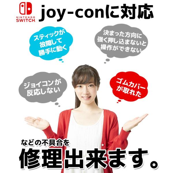 22/4/22 ・充電ができない ・本体とJoyConの接続が不安定 ・キャラクターが勝手に動く などなど!!! JoyConのスティックが壊れてしまっていると 勝手に動いたり、動かなかったりして めちゃくちゃ不便です💧(;^ω^)💧 JoyConスティックの修理は30分程で完了しますNintendo Switch JoyCon 故障修理 ※各ボタンが効かない。 ※勝手に動く。 ※本体との認識ができない。 ※本体との固定が緩い。 ※折れた破損。 ※充電できない。17/2/21 Switch ジョイコン 充電スタンド Joy Con 充電 ホルダー 左/右 ハンドル 4台同時充電 急速充電器 収納 LED ジョイコン コントローラー 充電方法は本体にジョイコンを差し込めば充電できますが、充電される仕組みについては、ジョイコンや本体に端子が見当たらない事からワイヤレス充